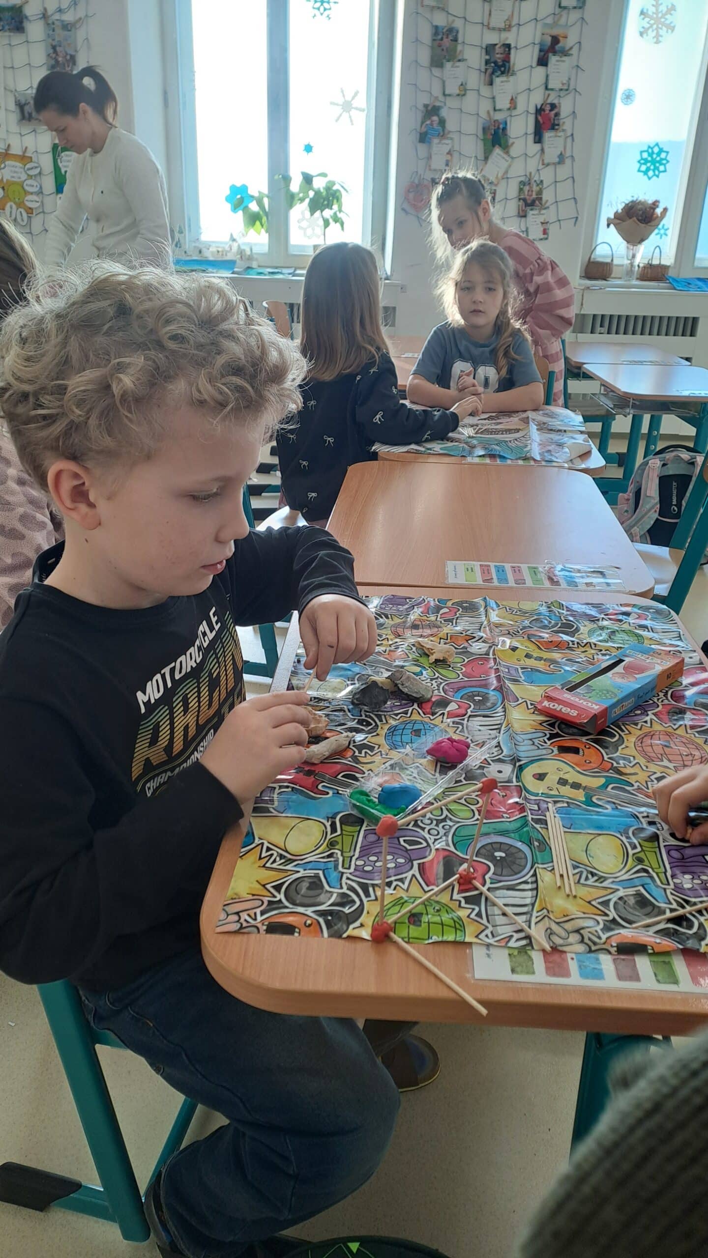 Práce byla nejen tvořivá, ale i poučná. Děti si prakticky osvojily vlastnosti krychle a naučily se hledat geometrii kolem sebe.